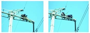 工作人員上塔,先對靠近接地側的1~3個傘裙進行定量噴水霧,然后用數碼拍攝裝置對噴水后的復合絕緣子進行拍照。